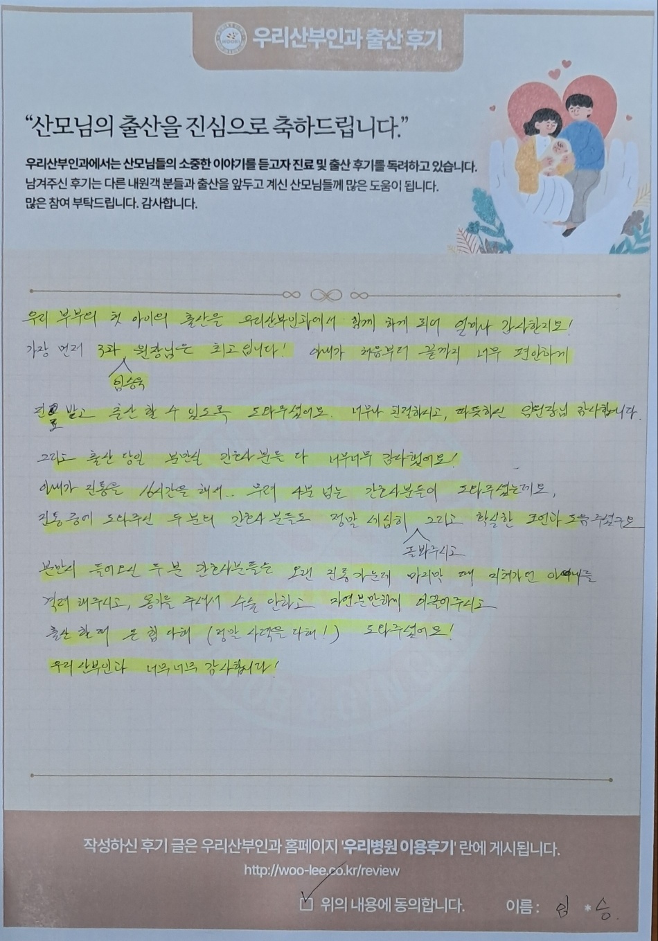 우리 부부의 첫 아이의 출산은 우리산부인과에서 함께 하게되어 얼마나 감사한지요!