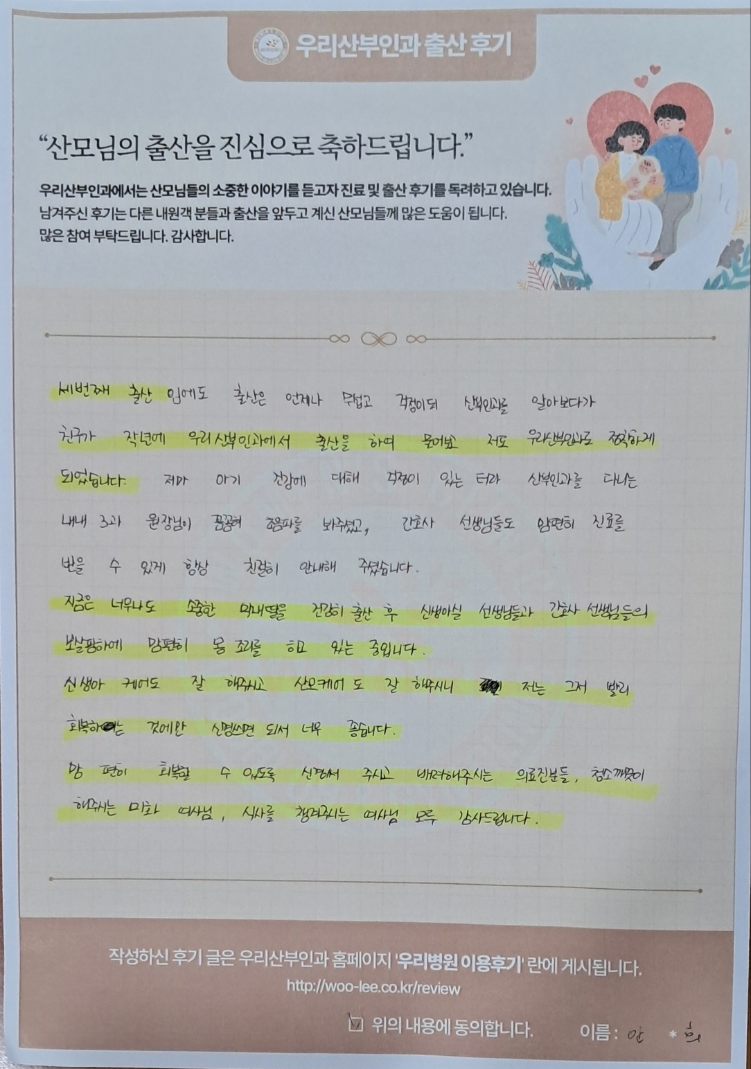 친구가 작년에 우리산부인과에서 출산을 하여 물어보고 저도 우리산부인과로 정착하게 되었습니다.