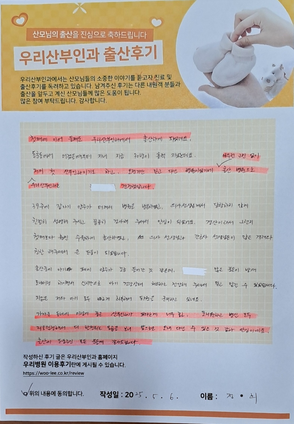정*희 산모님 출산후기 - 첫째에 이어 둘째도 우리산부인과에서 출산하게되었네요.