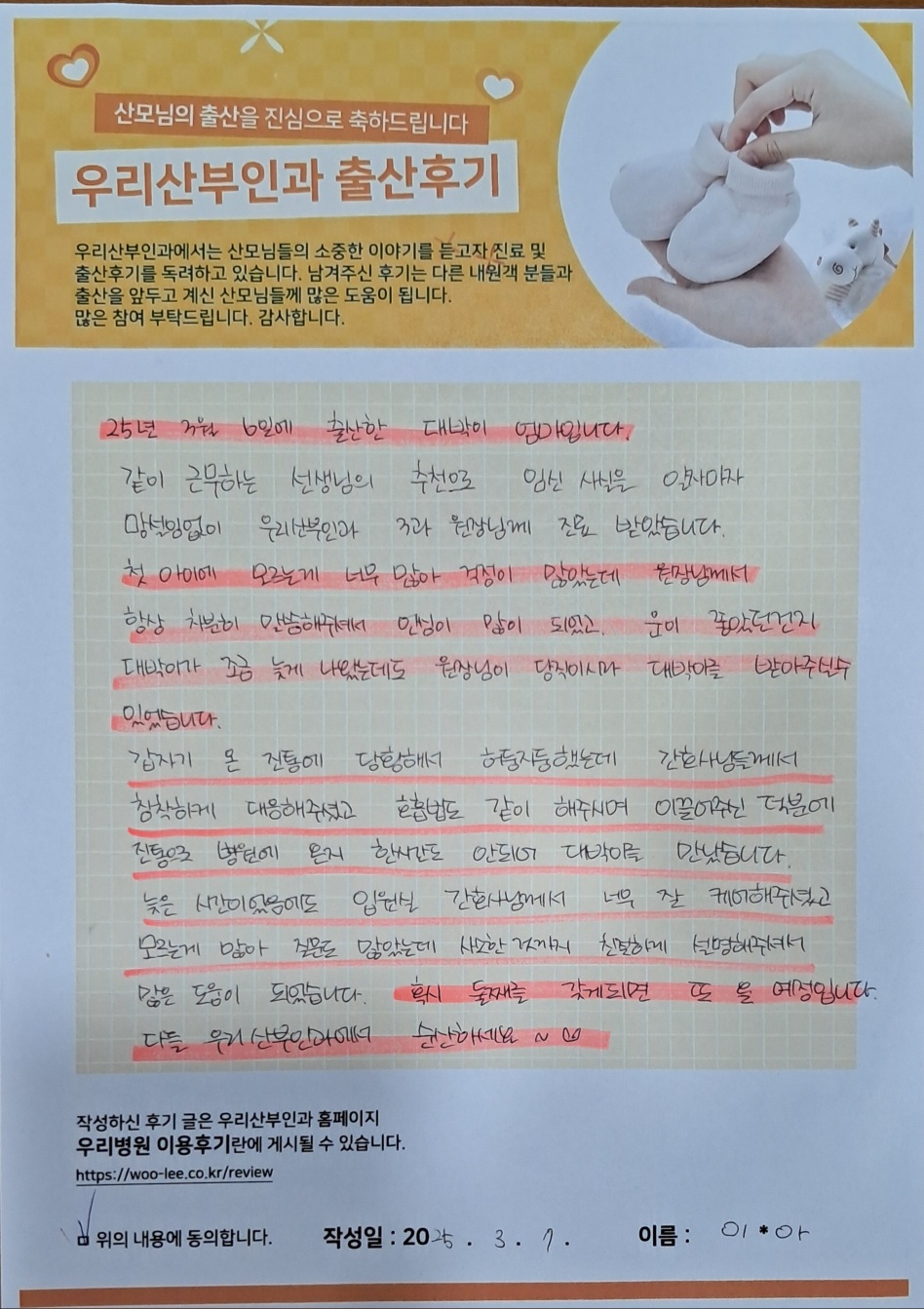 다들 우리산부인과에서 순산하세요.
