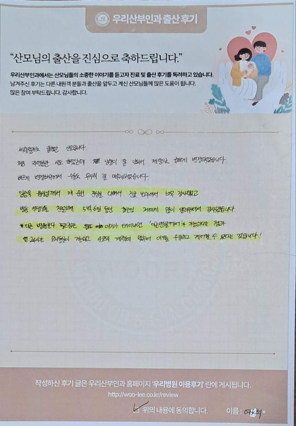 다른 병원보다 좋은점은 아기가 태어나면 이른맨살안아주기가 가능하다는 점과