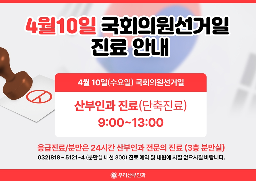 4월 10일 (수) 국회의원 선거일 진료 안내 입니다.