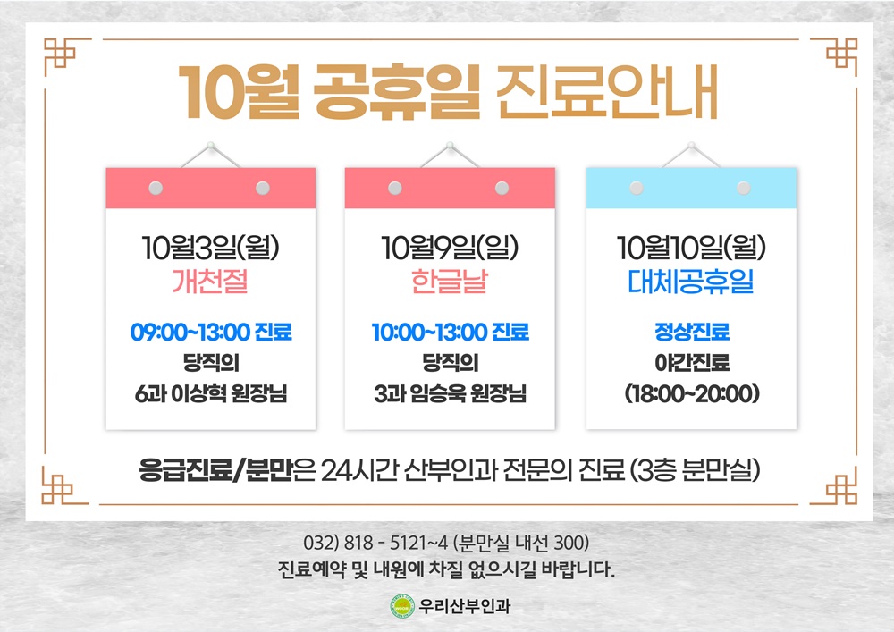 진료예약 및 내원에 차질 없으시길 바랍니다.