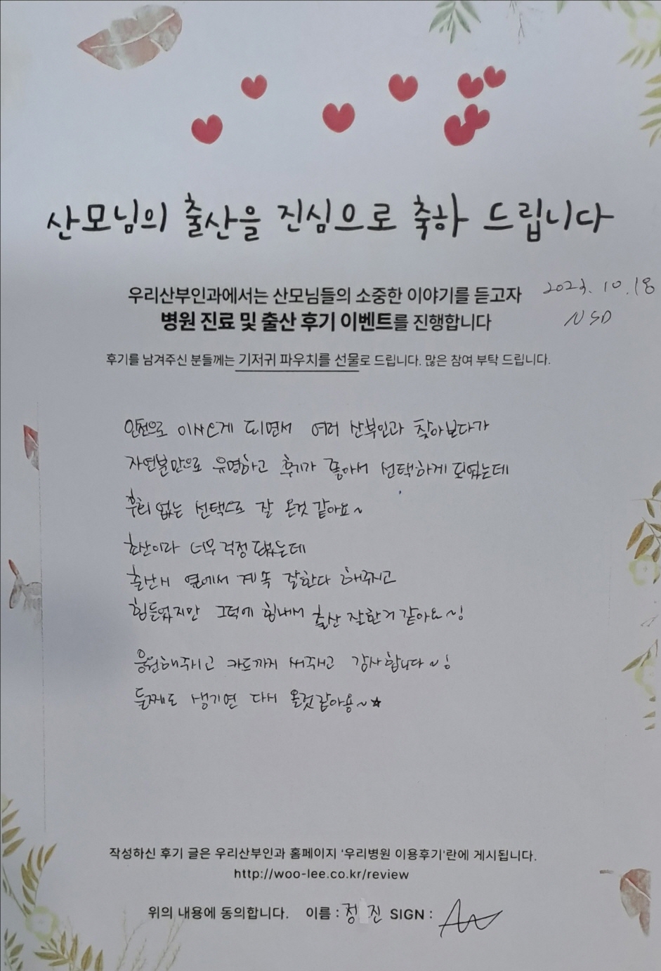 자연분만으로 유명하고 후기가 좋아서 선택하게 되었는데