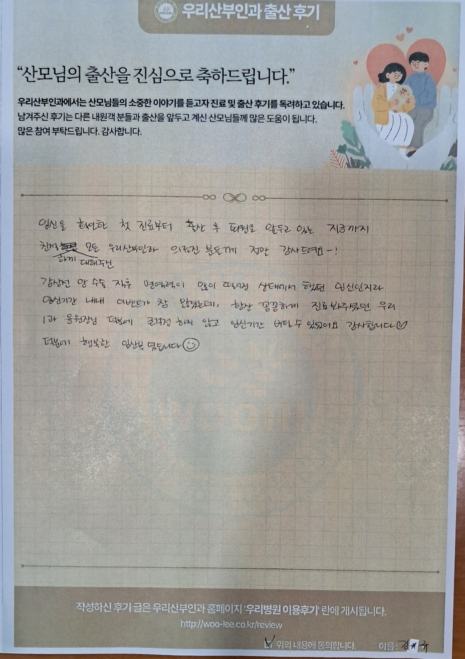 친절하게 대해주신 모든 우리산부인과 의료진 분들께 정말 감사드려요~