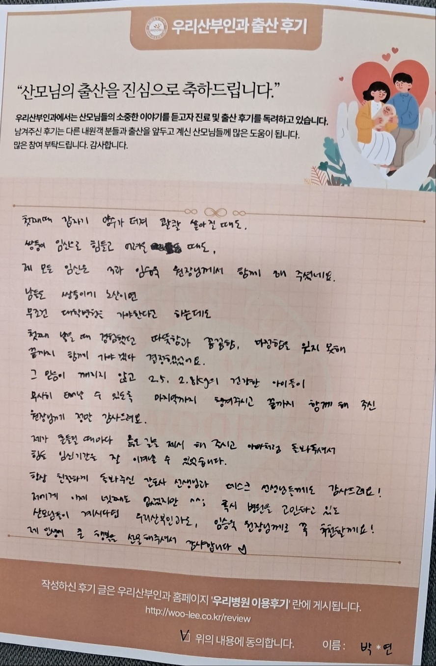 혹시 병원을 고민하고 있는 산모님들이 계시다면 우리산부인과로,