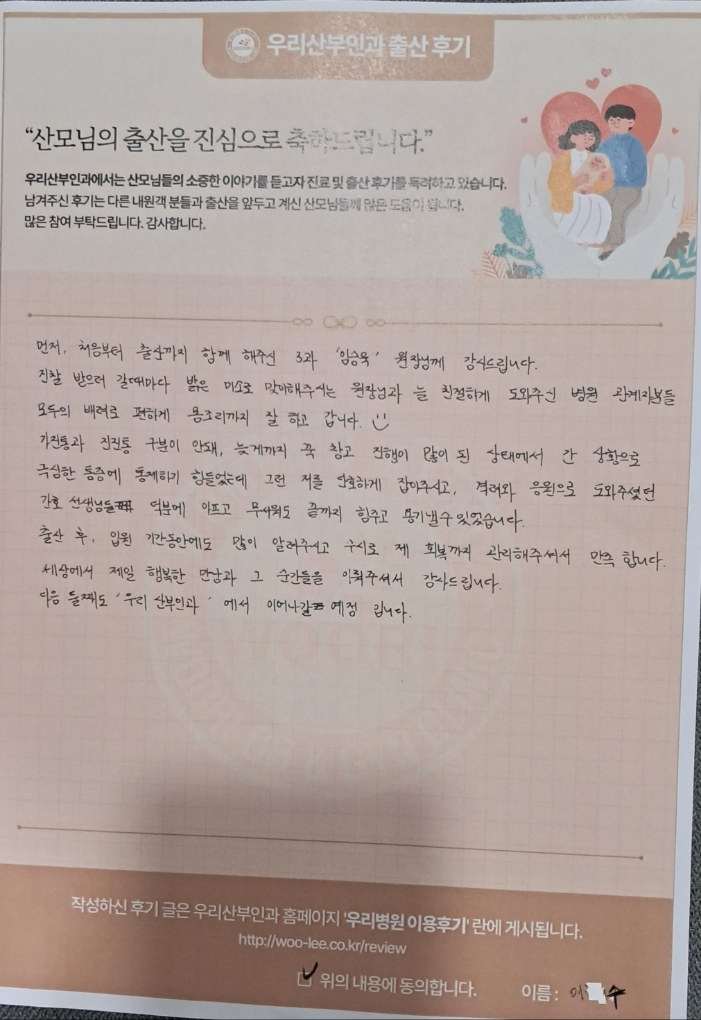 먼저 처음부터 출산까지 함께 해주신 3과 '임승욱' 원장님께 감사드립니다.