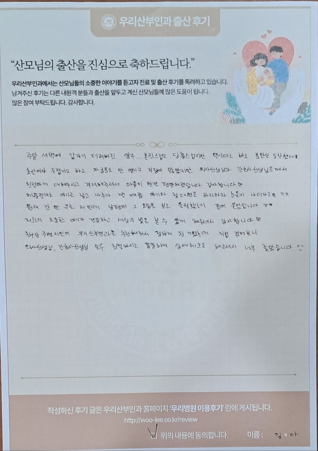 초산이라 두렵기도 하고 자궁문도 안열리고 걱정이 많았지만 의사선생님과 간호사선생님들께서