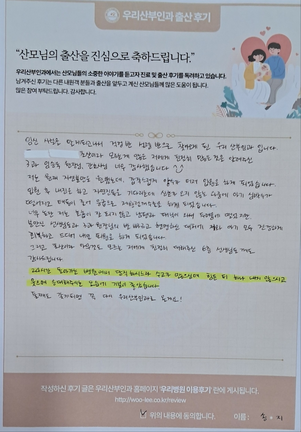 둘째도 갖게되면 꼭 다시 우리산부인과로 올게요!