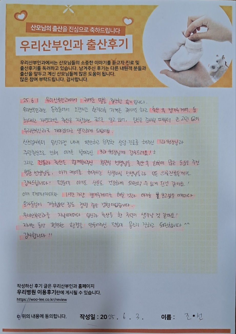25.6.1 우리산부인과에서 귀여운 딸을 출산한 후기입니다.
