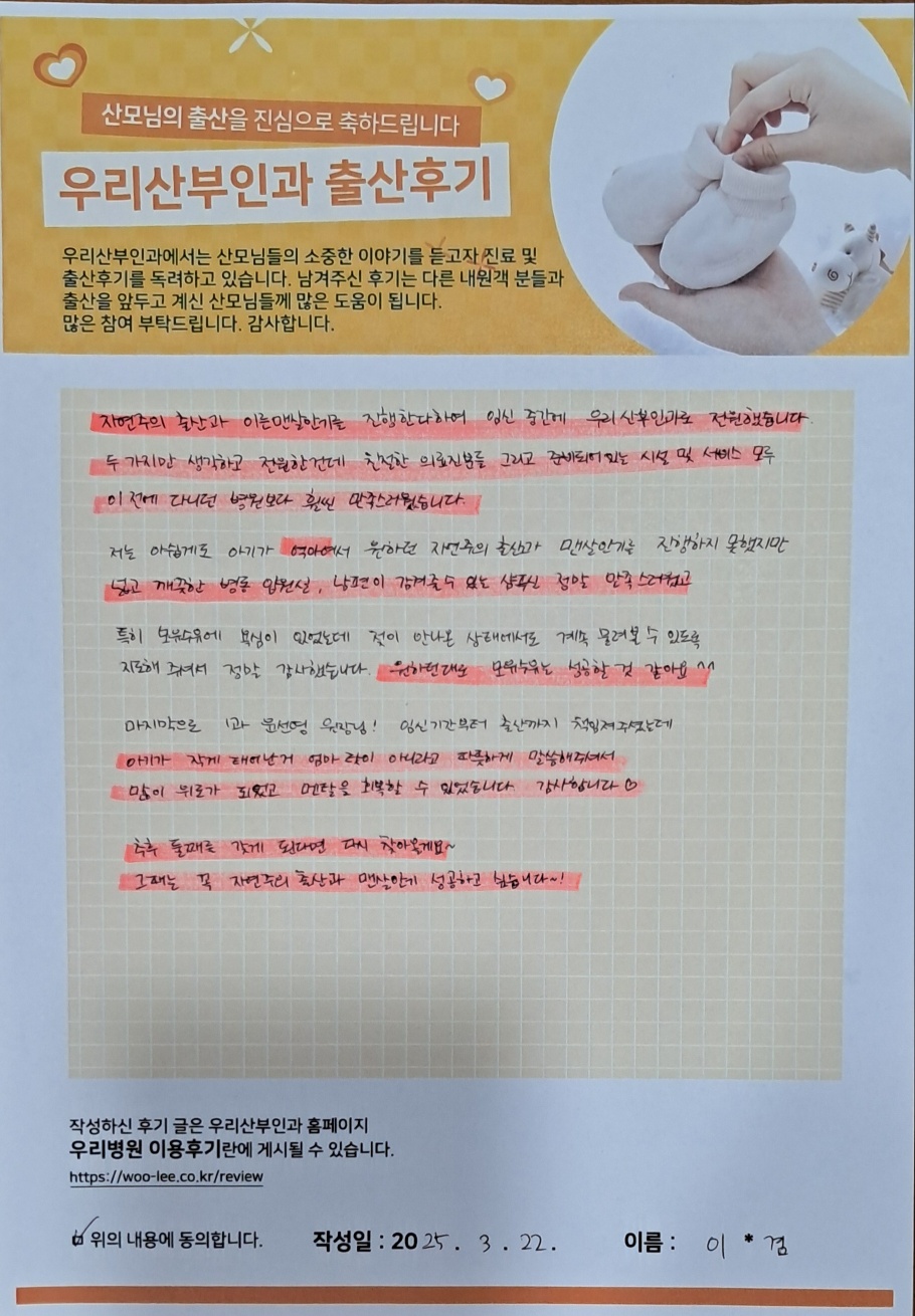 이*겸 산모님 출산후기 - 엄마의 마음까지도 헤아려주는 우리산부인과.