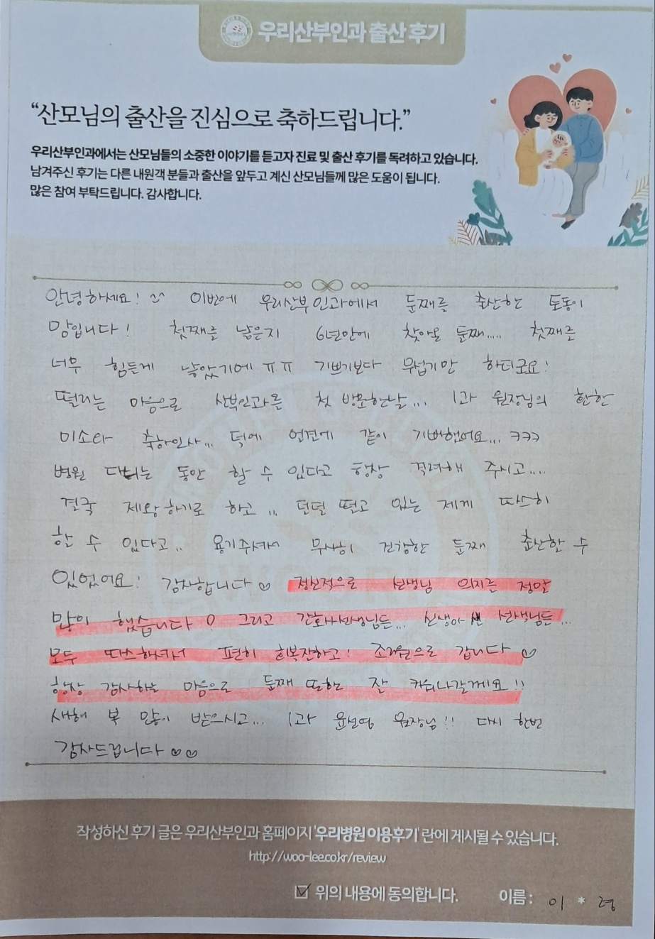 이번에 우리산부인과에서 둘째를 출산한 토동이 맘입니다!