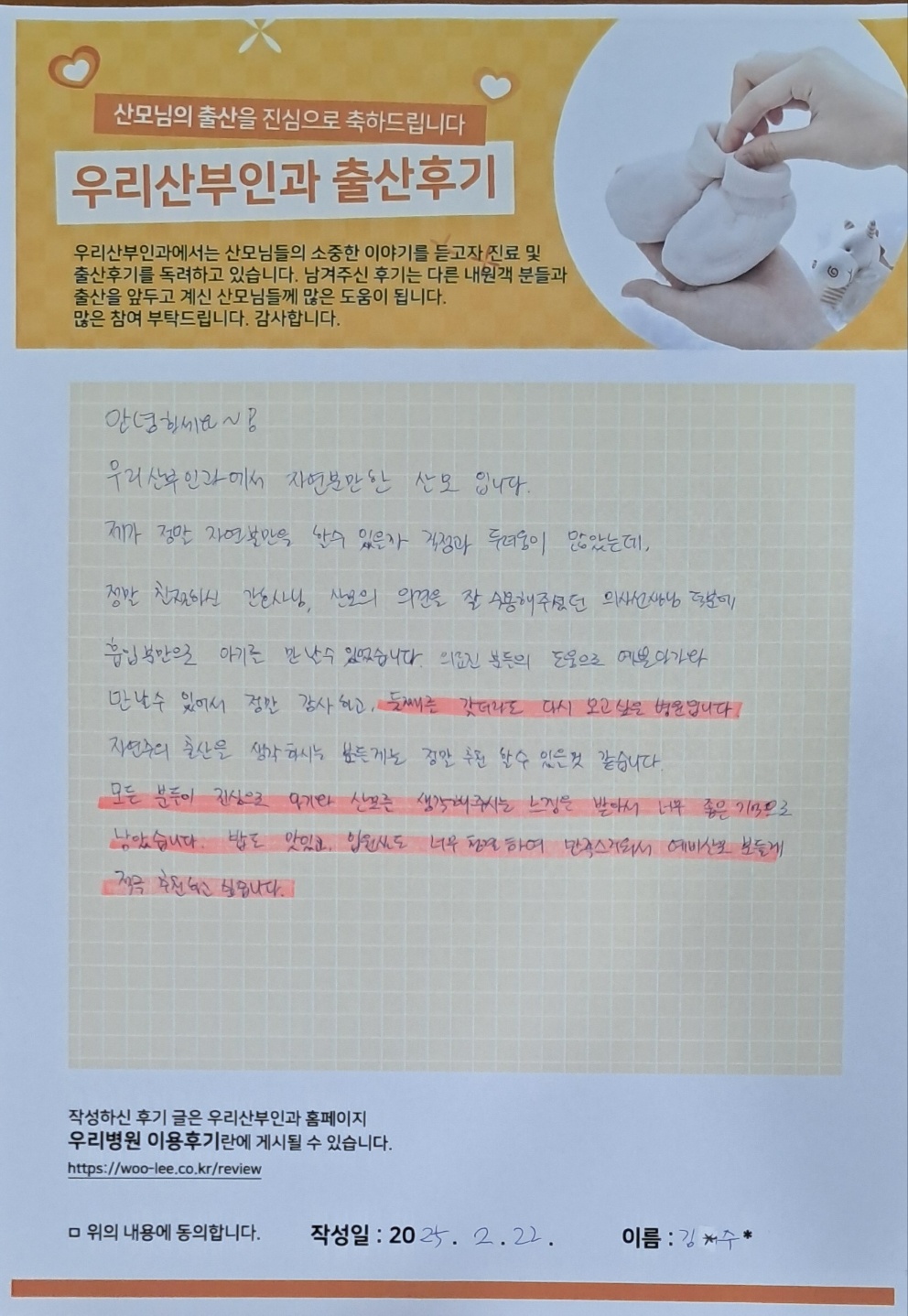 김*수 산모님 출산후기 - 자연주의출산은 생각하시는 분들께는 정말 추천할 수 있을 것 같습니다.