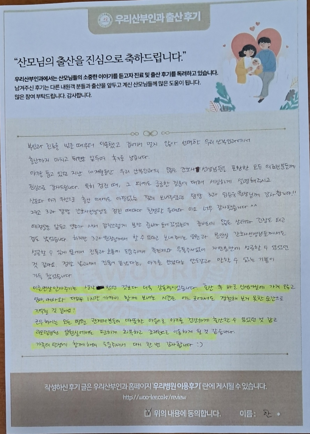 부인과 진료를 받을 때부터 이용했고집에서 멀지 않아 선택한 우리산부인과에서 출산까지 마치고 퇴원을 앞두며 후기를 남깁니다.