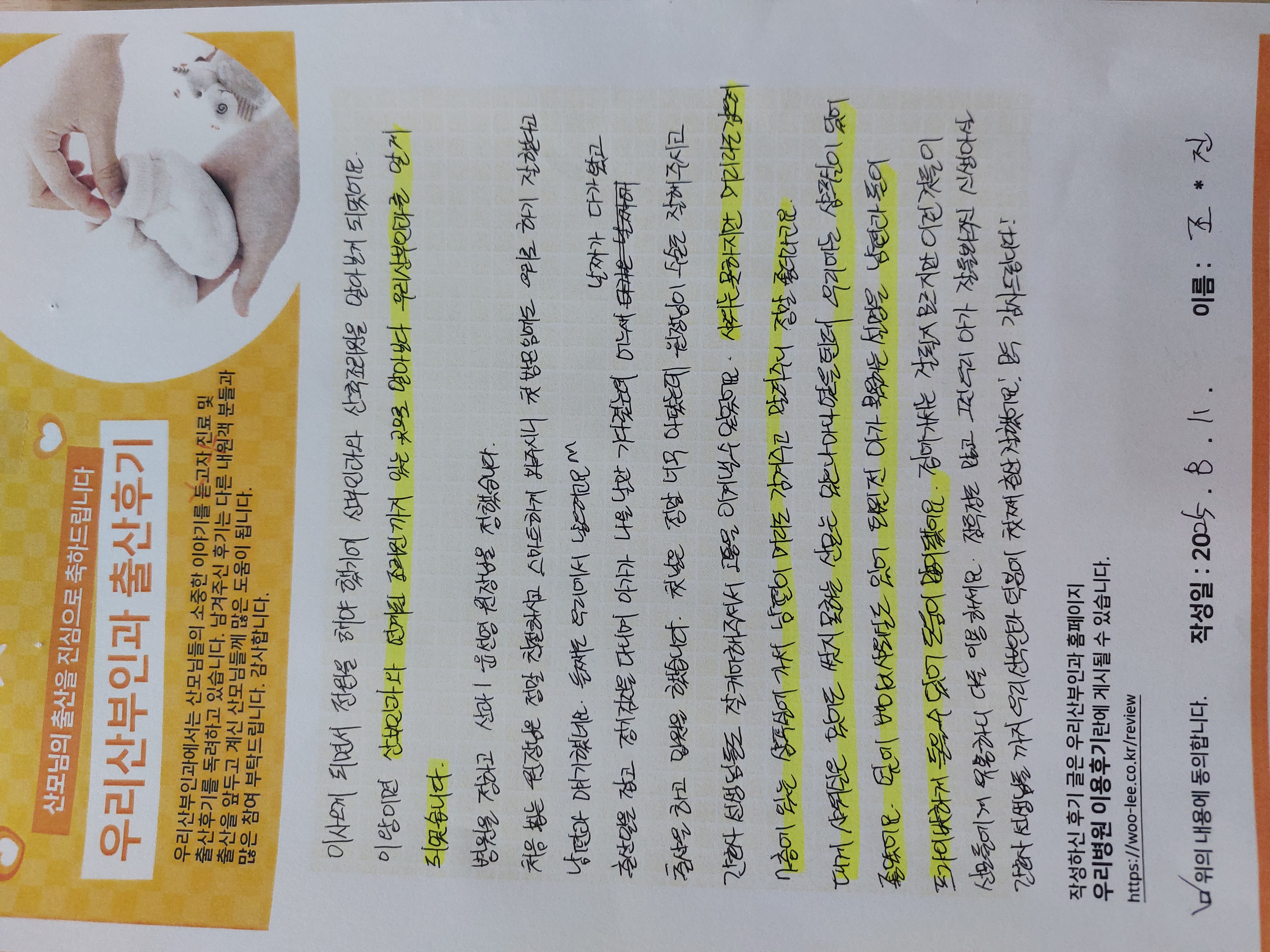 조*진 산모님 출산후기 - 첫방문임에도 여기로 하기 잘했다고 남편과 얘기했네요.