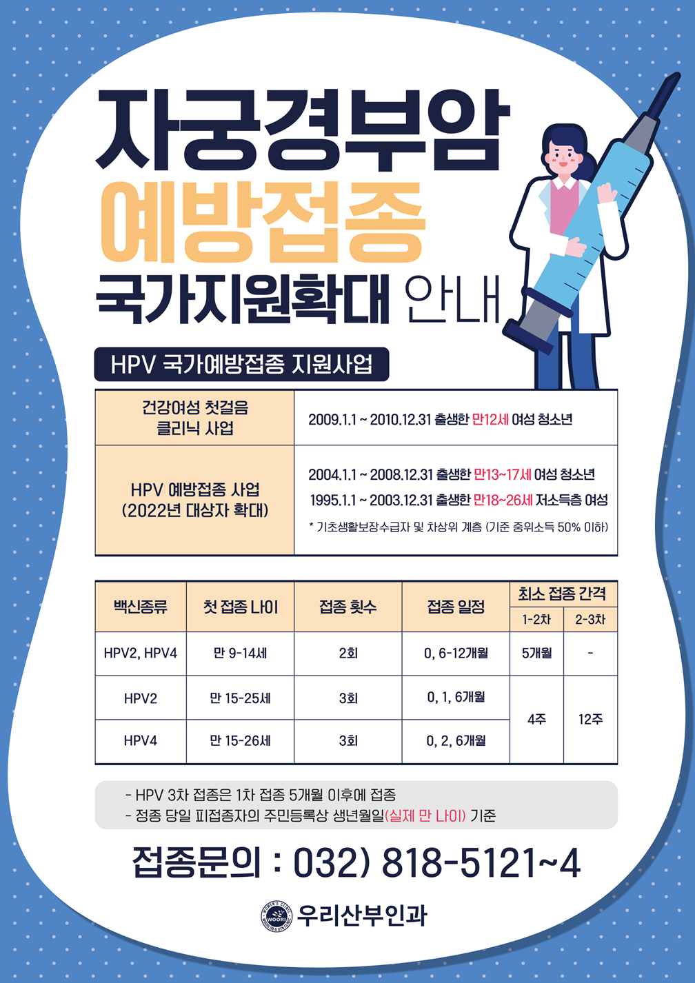 자궁경부암 예방접종 국가지원확대 안내