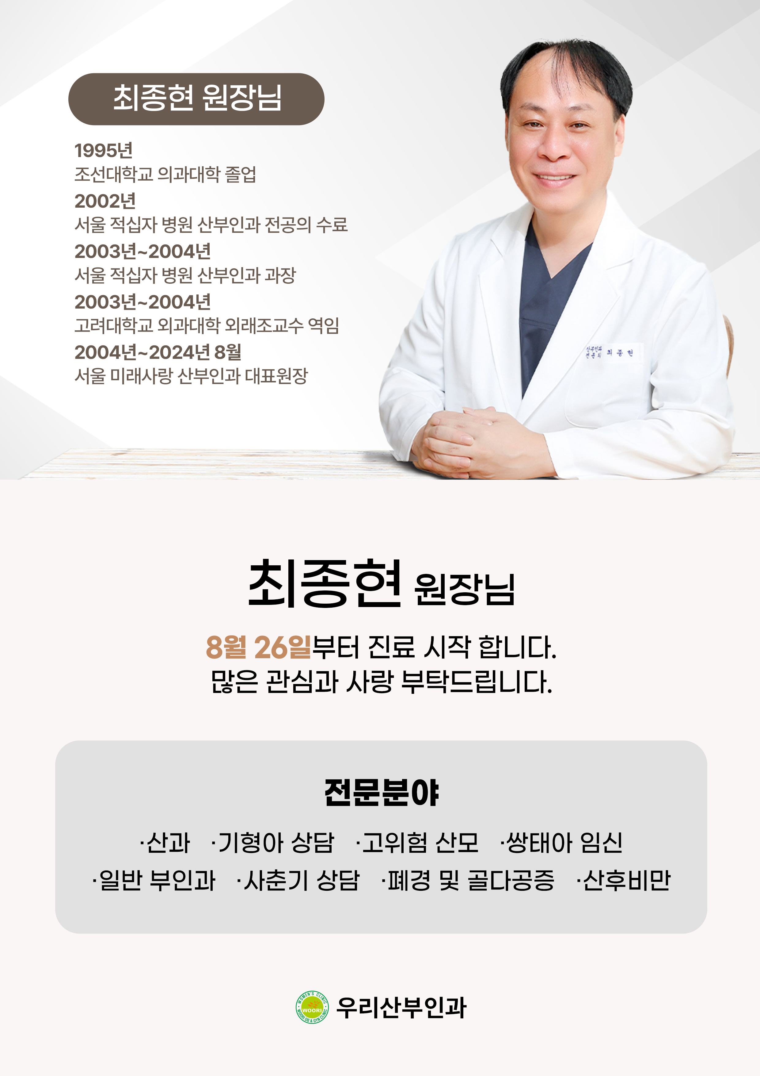 최종현 원장님은 20년 이상의 경력을 지니신 산부인과 전문의이십니다.