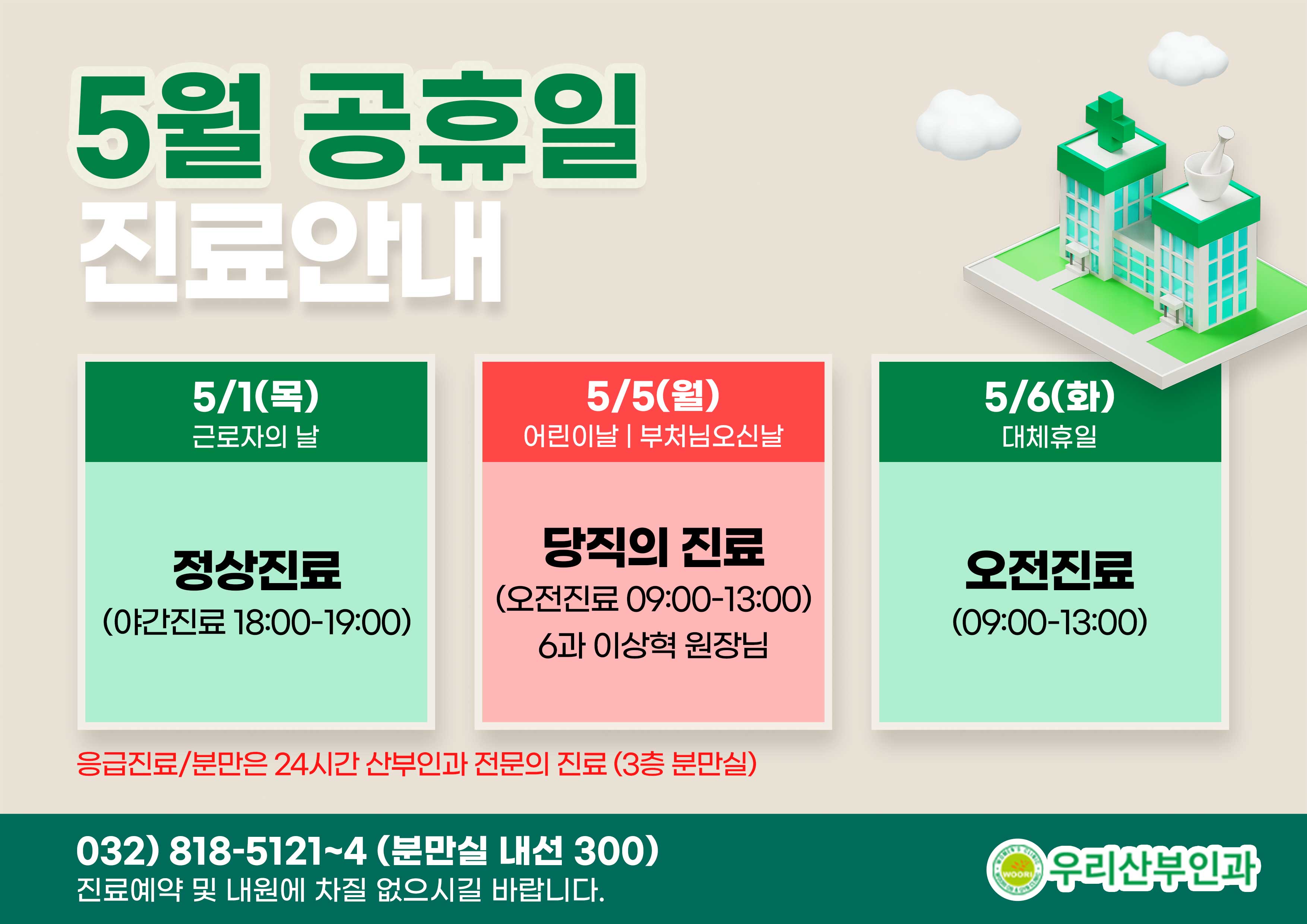 5월 공휴일 진료 안내입니다.