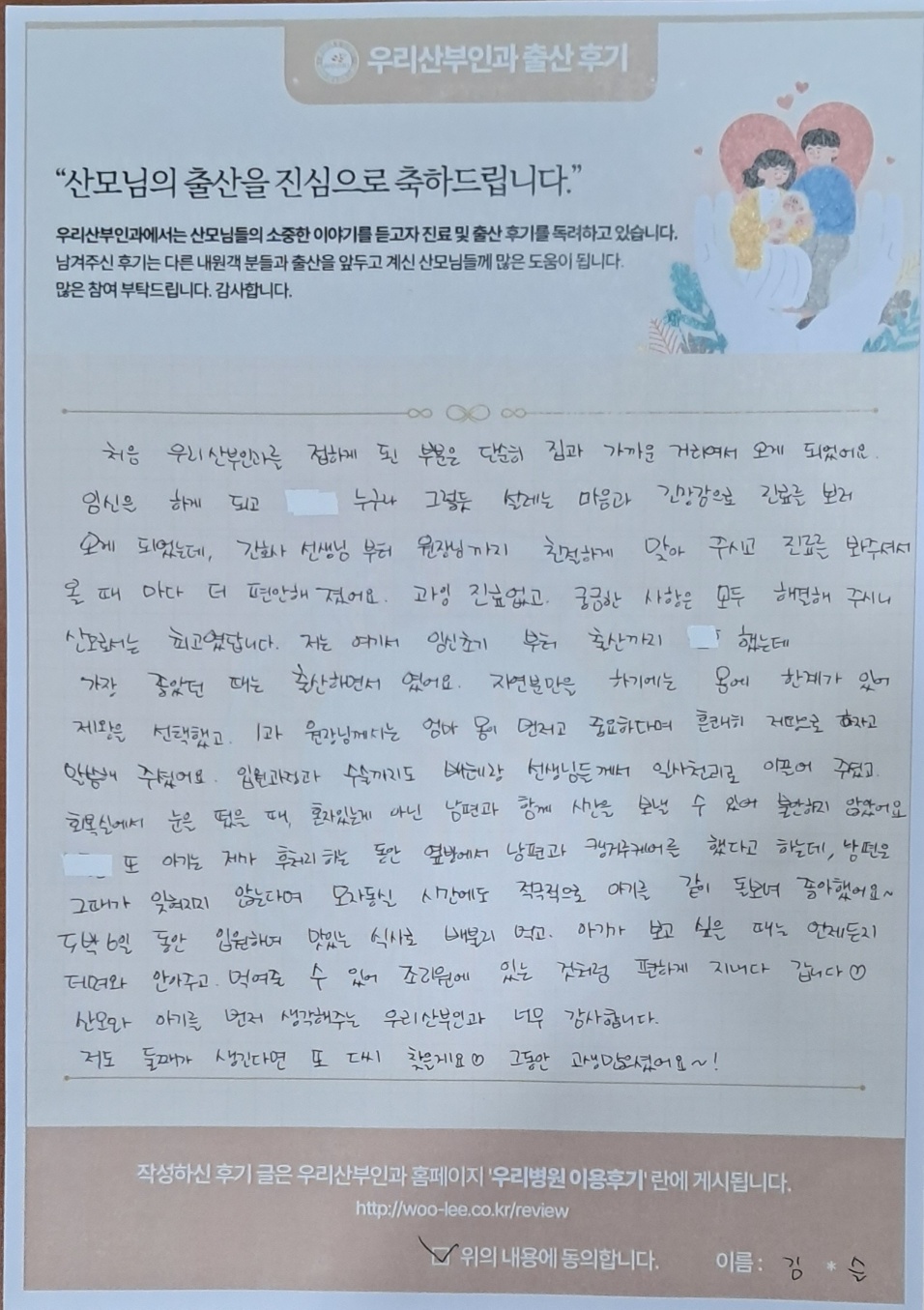 산모와 아기를 먼저 생각해주는 우리산부인과 너무 감사합니다.