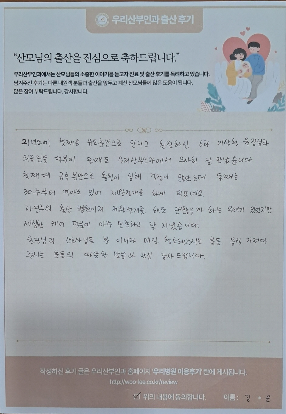 21년도에 첫째를 유도분만으로 만나고 친절하신 6과 이상혁 원장님과 의료진들 덕분에
