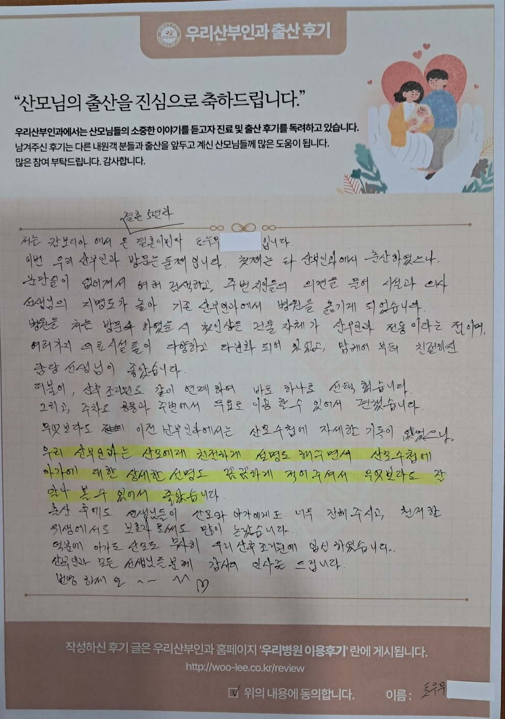 우리산부인과는 산모에게 친절하게 설명도 해주면서 산모수첩에 아가에 대한
