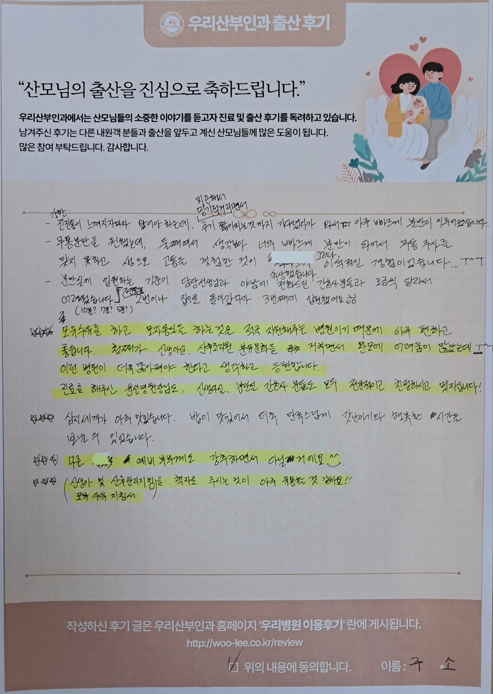 진료를 해주신 윤선영 원장님도, 신생아실 분만실 간호사 분들도 모두 전문적이고 친절하시고 멋지십니다!