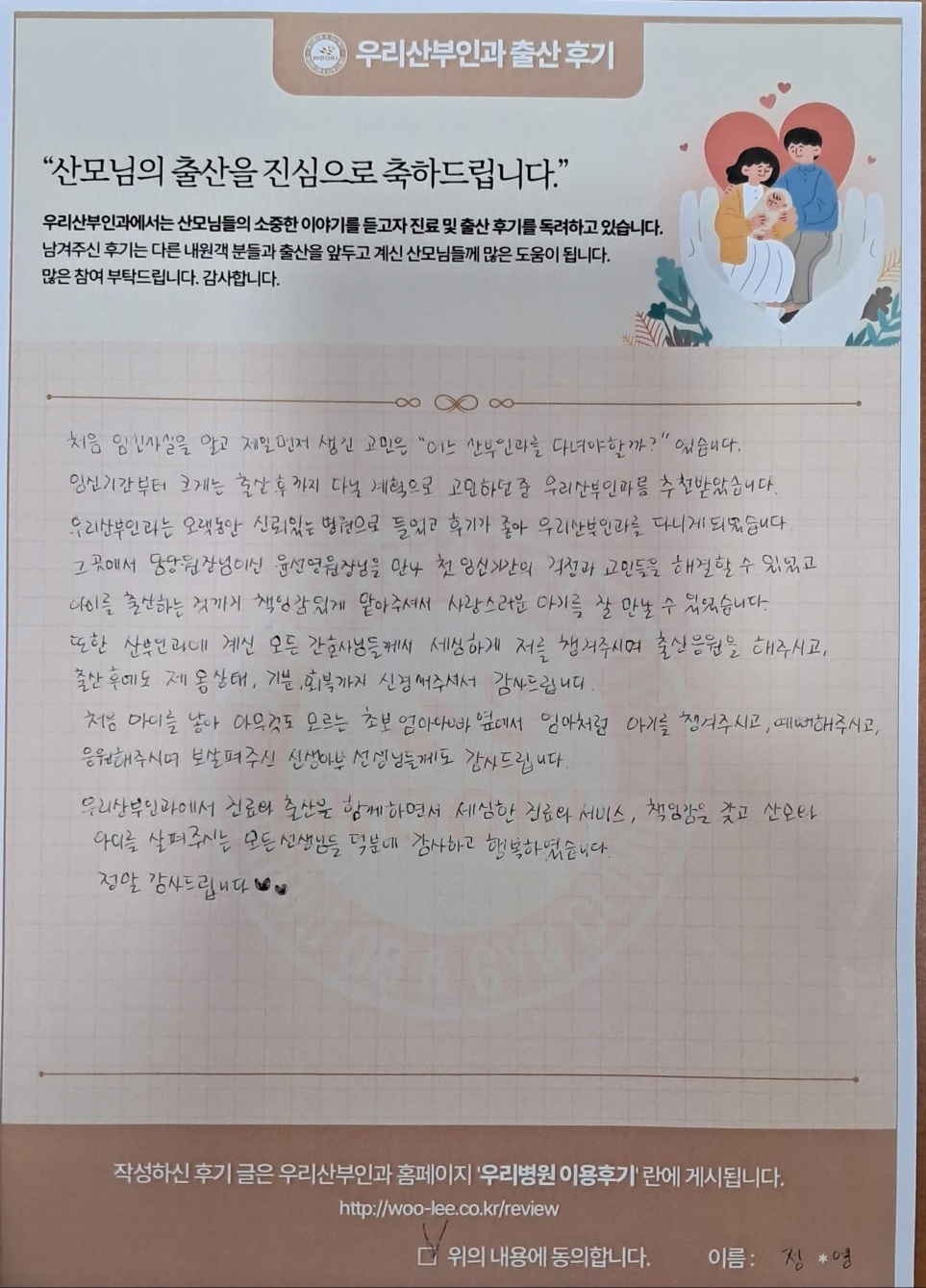 우리산부인과에서 진료와 출산을 함께하면서 세심한 진료와 서비스,