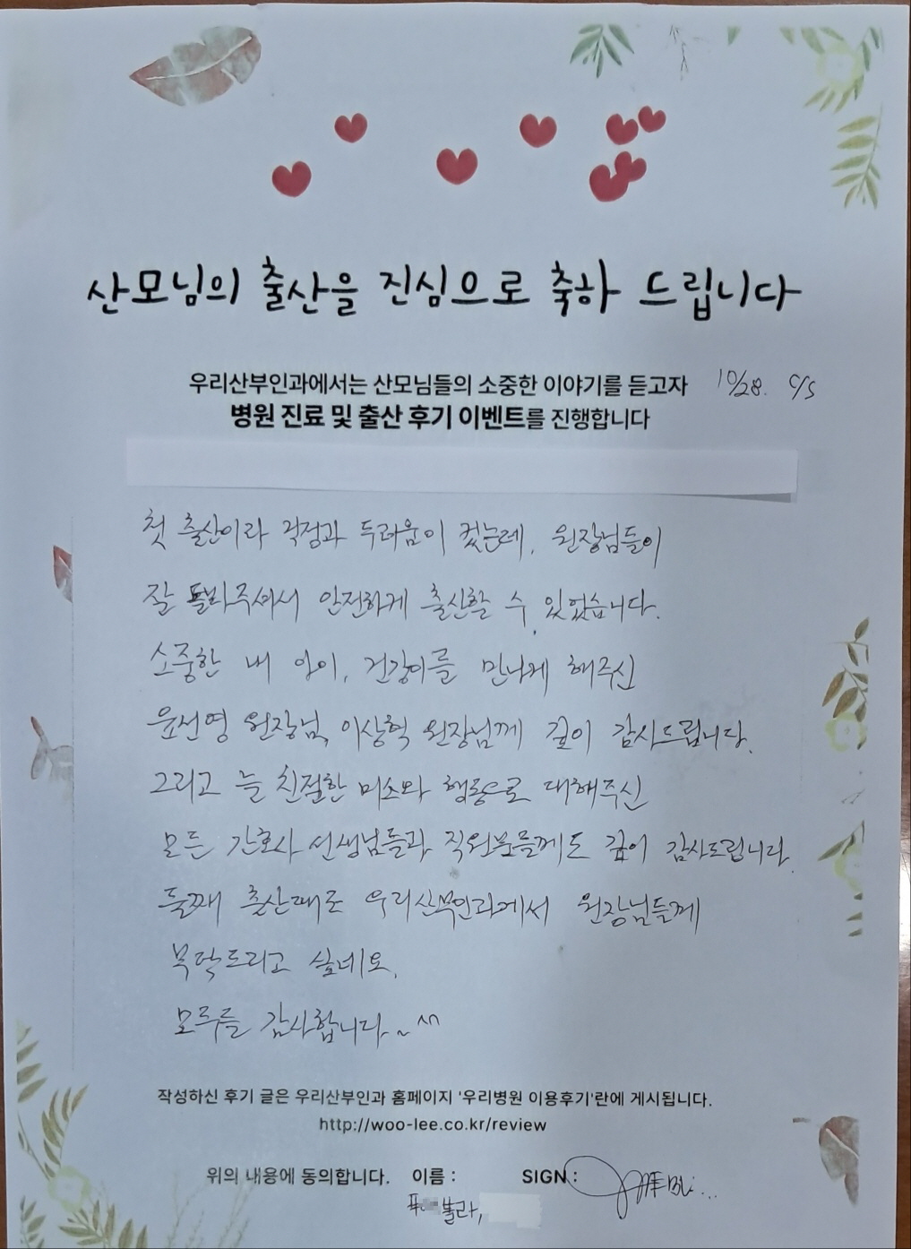 잘 돌봐주셔서 안전하게 출산할 수 있었습니다.