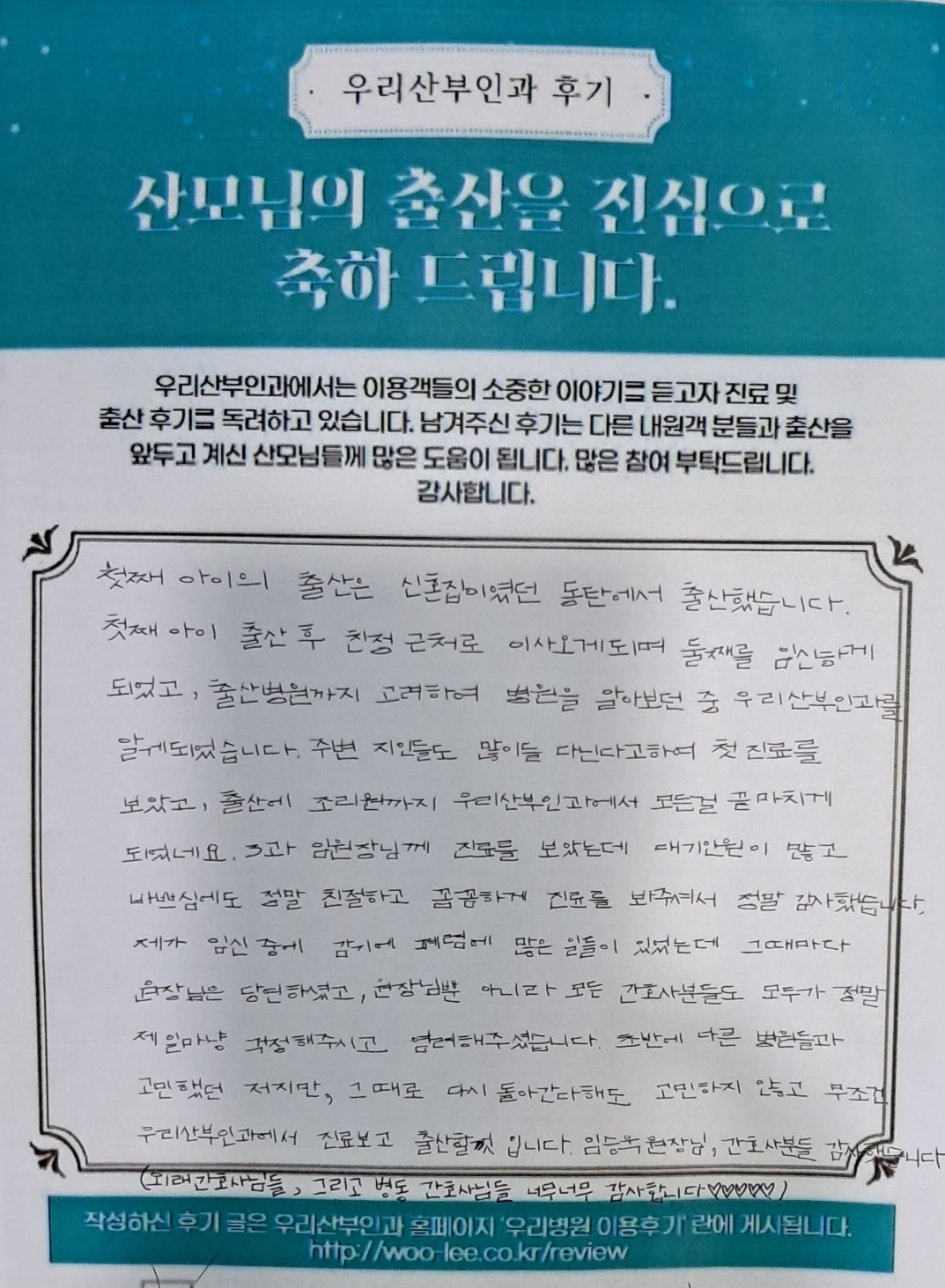 출산 병원까지 고려하여 병원을 알아보던 중 우리산부인과를