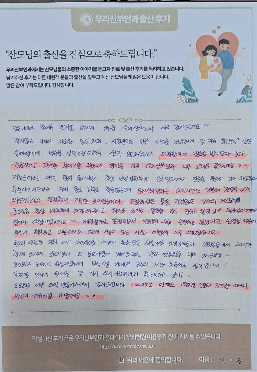 둘째를 만나게 된다면 꼭 다시 우리산부인과와 함께하고 싶어요.