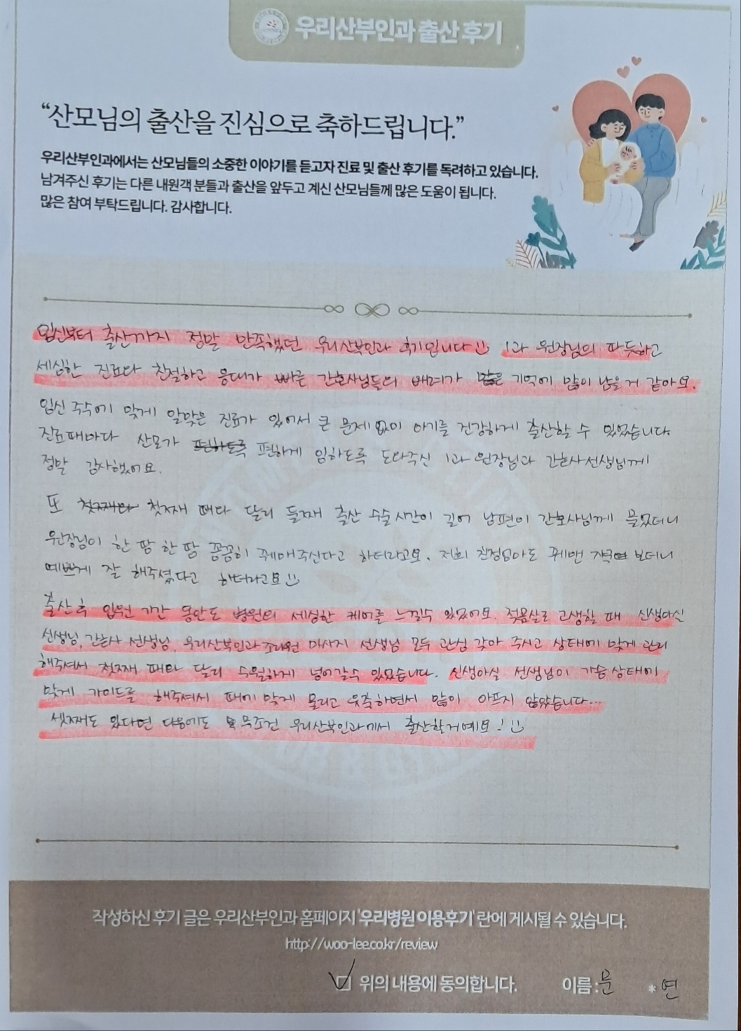 셋째도 있다면 다음에도 무조건 우리산부인과에서 출산할거에요!