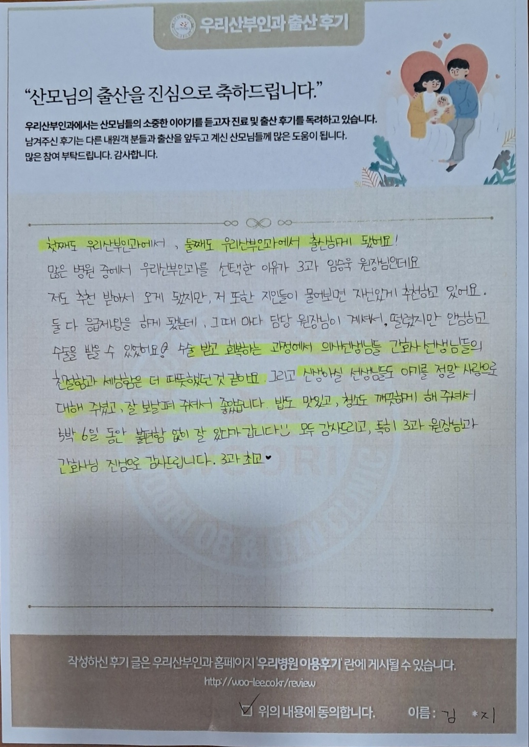 첫째도 우리산부인과에서, 둘째도 우리산부인과에서 출산하게 됐어요!