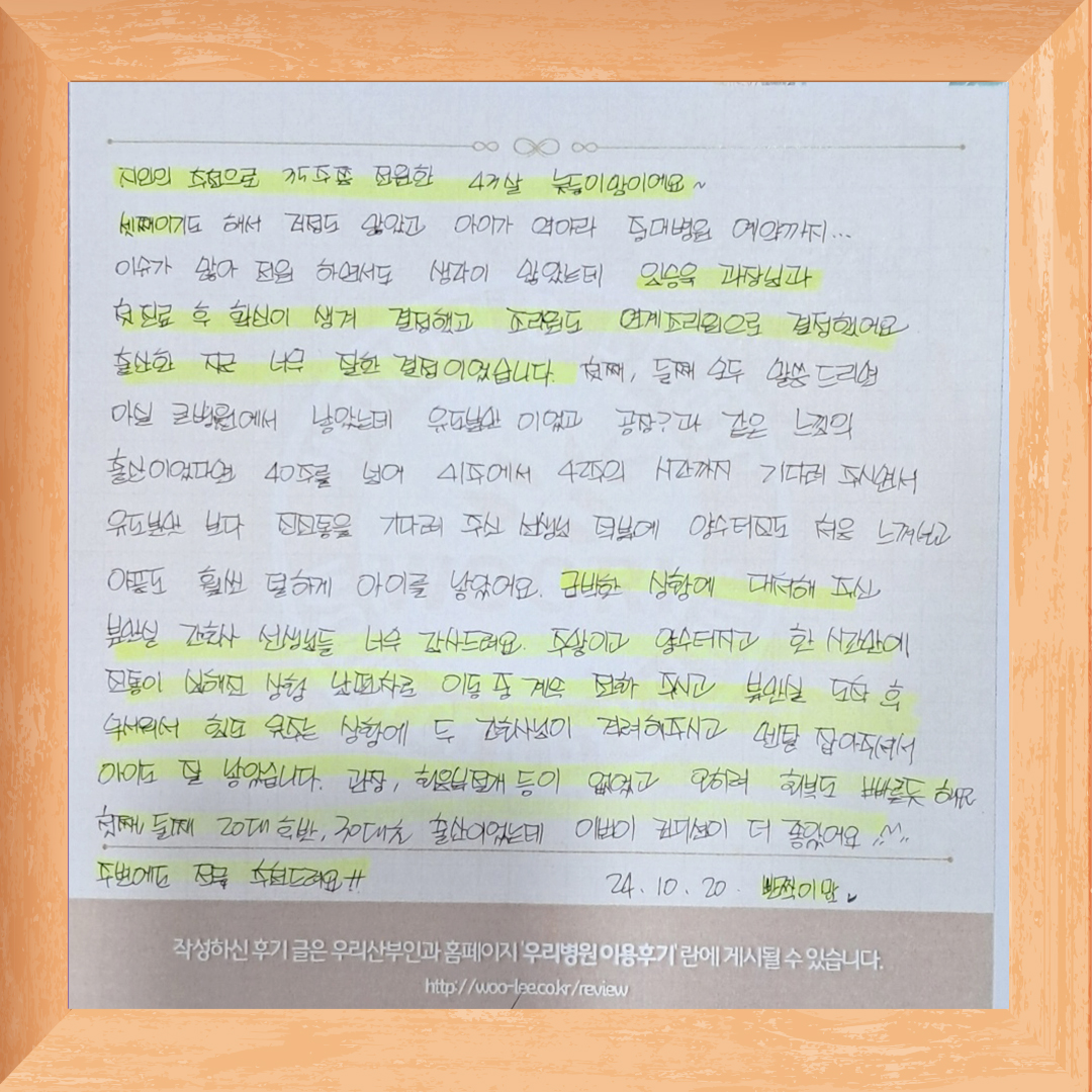 급박한 상황에 대처해 주신 분만실 간호사 선생님들 너무 감사드려요.