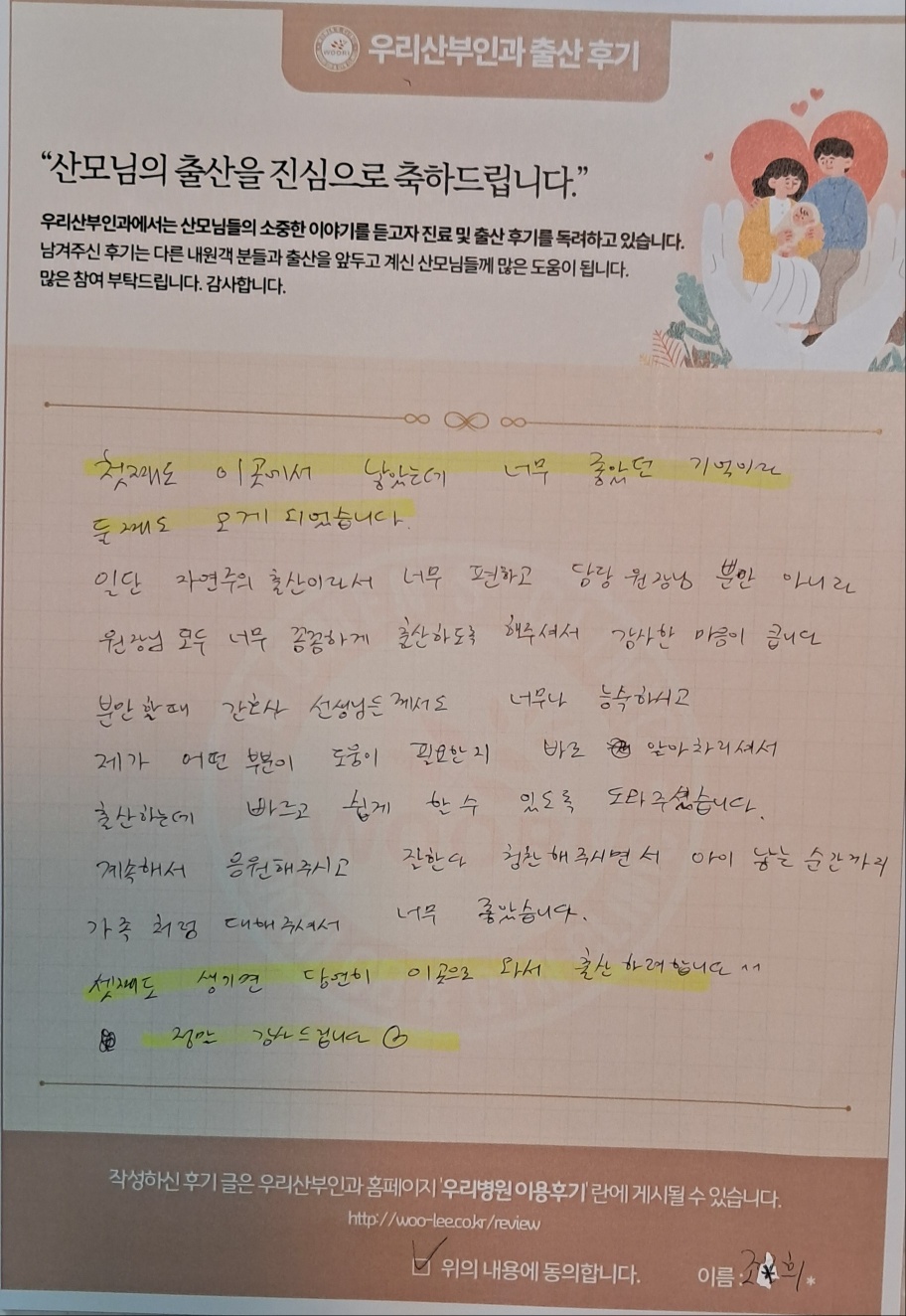 첫째도 이곳에서 낳았는데 너무 좋았던 기억에 둘째도 오게 되었습니다.
