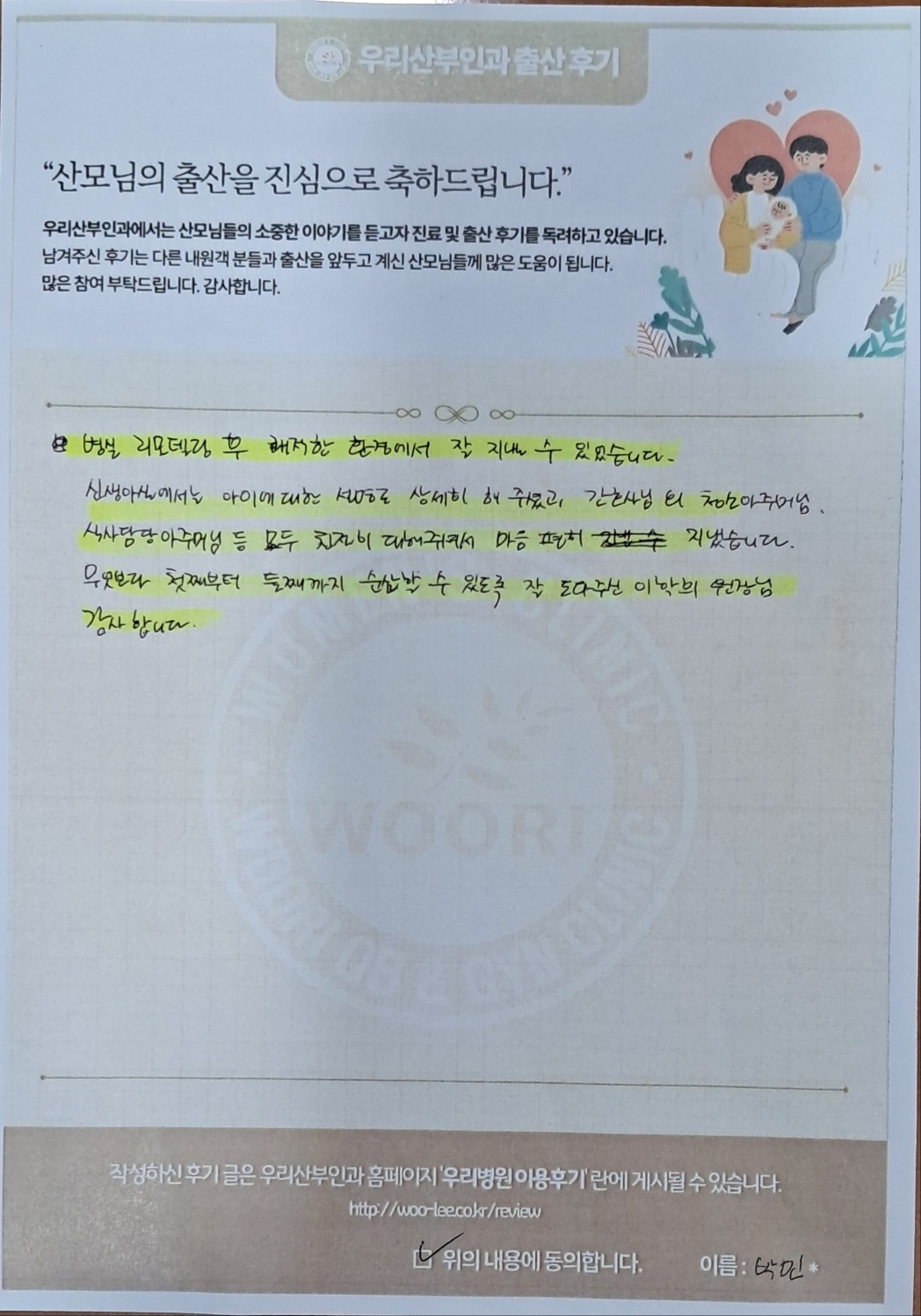 무엇보다 첫째보다 둘째까지 순산할 수 있도록 잘 도와주신 이학희 원장님 감사합니다.