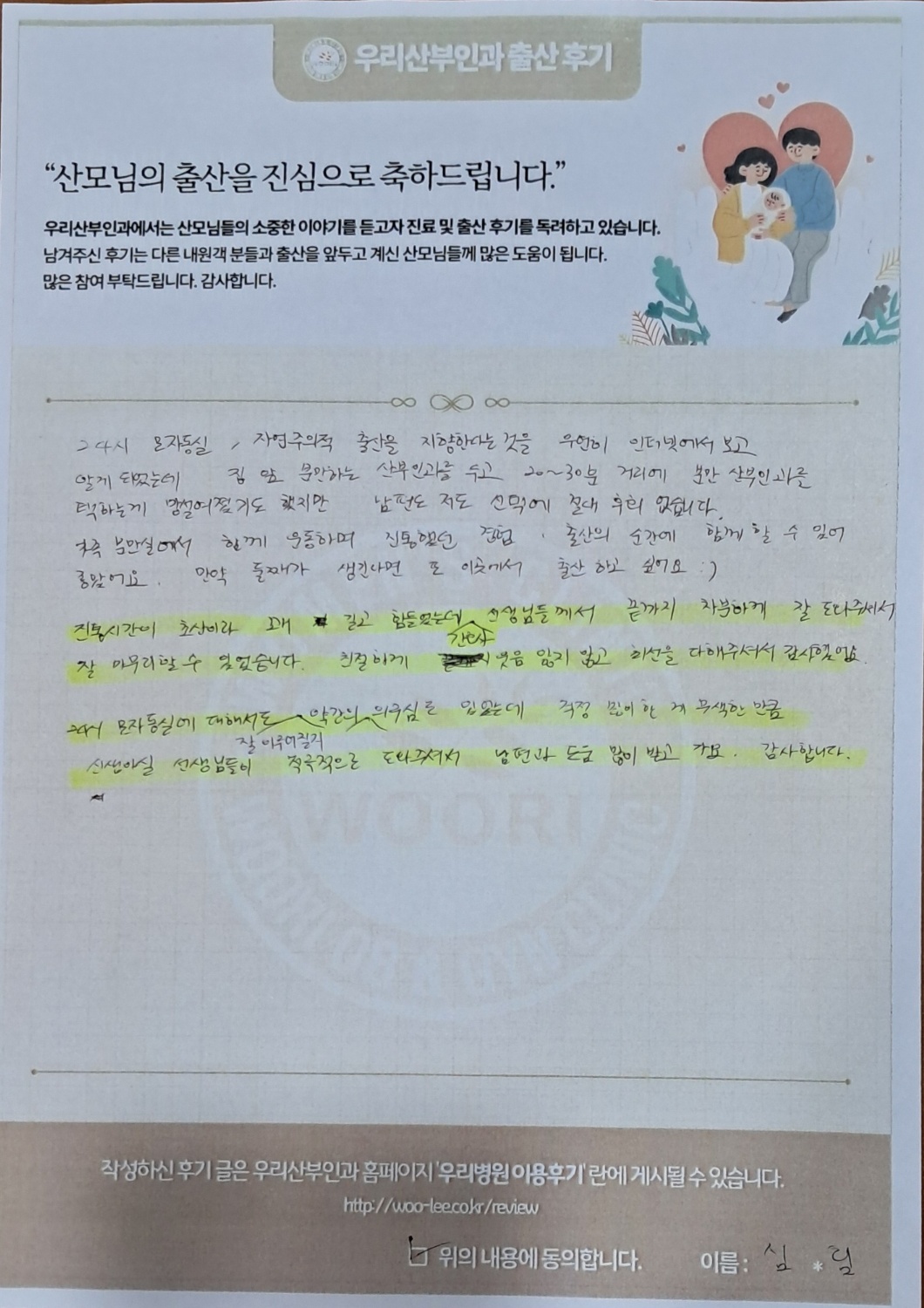 만약 둘째가 생긴다면 또 이곳에서 출산하고 싶어요:)