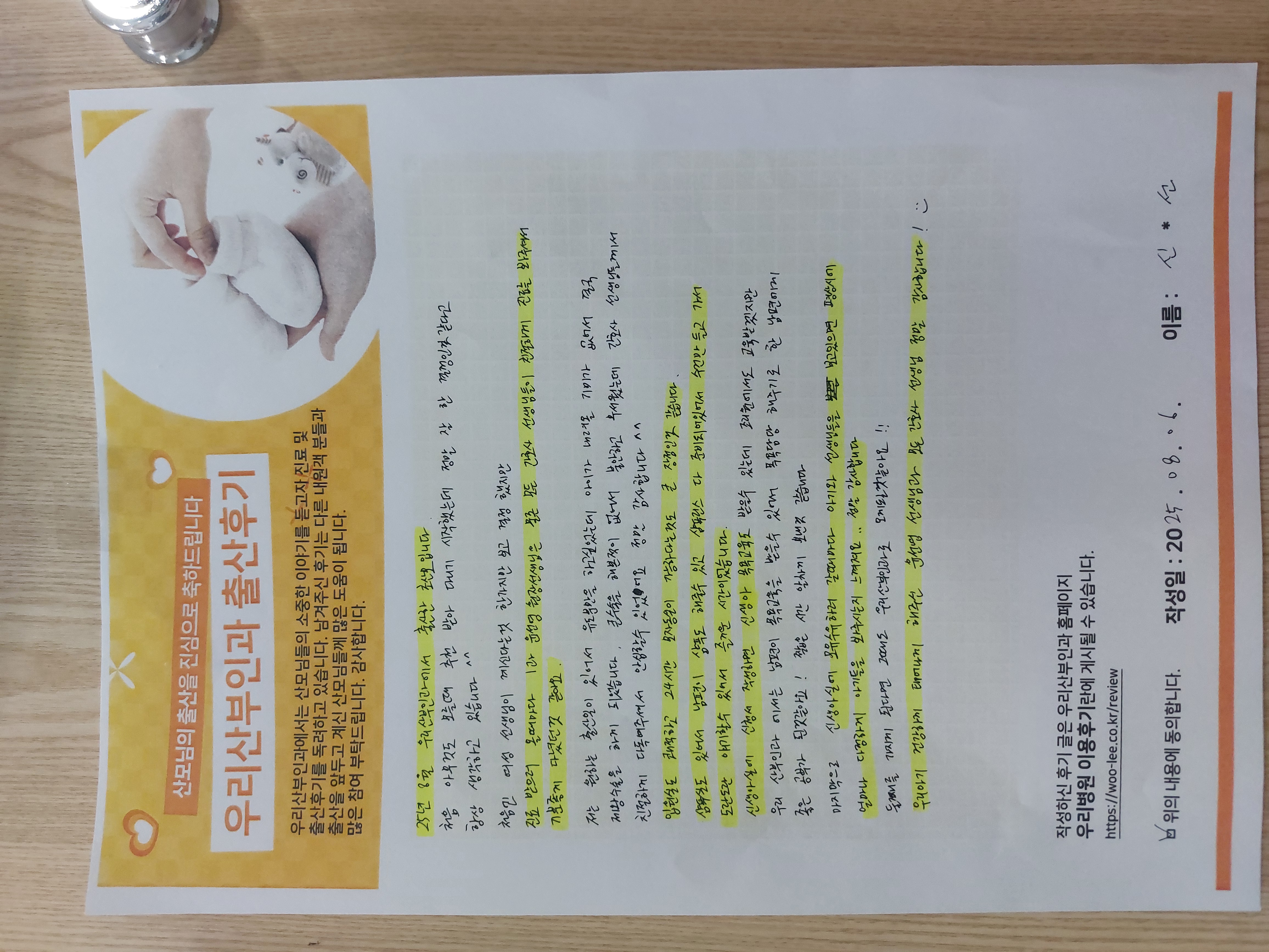 25년 8월 우리산부인과에서 출산한 초산모입니다.